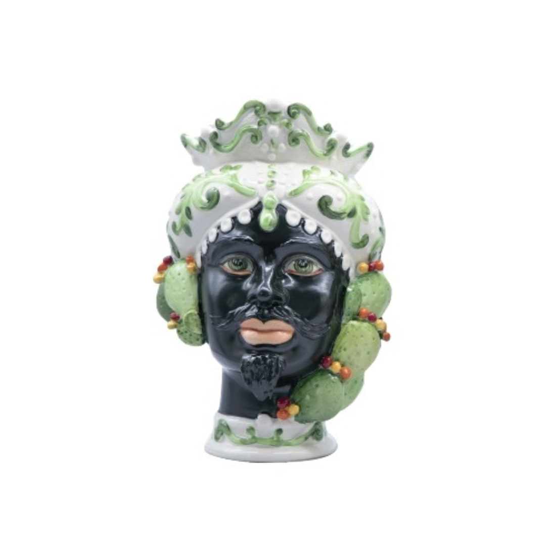 Ami l'eleganza? Allora non puoi perderti la nostra Testa di Moro Uomo Fichi Sbordone Porcellane da 25cm in porcellana Capodimonte! Lasciati conquistare dalla raffinatezza di questo prodotto esclusivo, completamente realizzato e dipinto a mano dai nostri artigiani. Aggiungi uno tocco di classe alla tua casa con questa preziosa creazione.