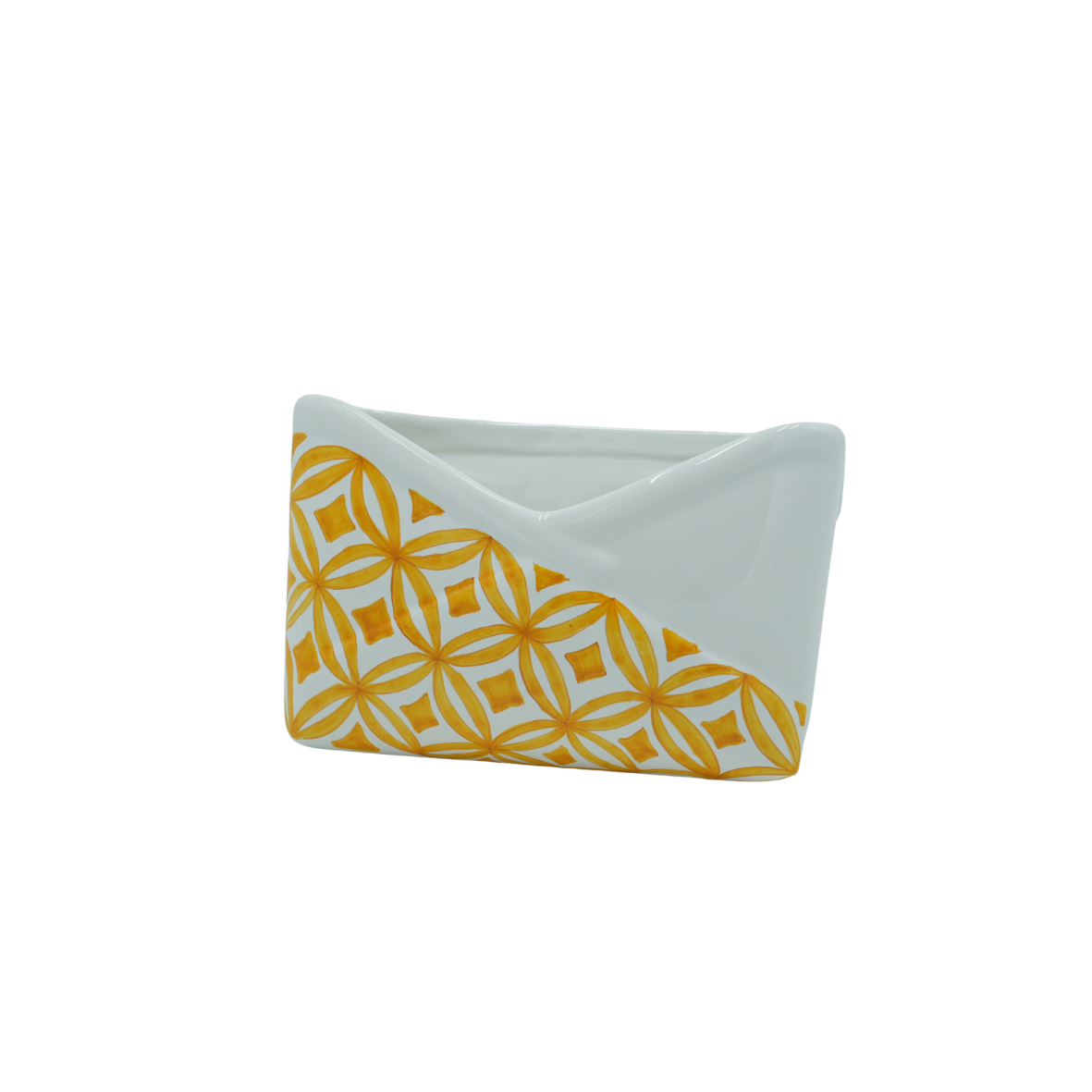 Portaposta in ceramica interamente realizzato e dipinto a mano da maestri artigiani italiani. Questo esclusivo pezzo Sophie Mariage combina artigianalità e eleganza, perfetto per chi apprezza i dettagli raffinati. Disponibile in diverse colorazioni e completamente personalizzabile secondo i tuoi gusti. Ogni portaposta arriva in un'elegante scatola bomboniera con packaging Sophie Mariage, rendendolo il regalo ideale per occasioni speciali. Un'opera d'arte funzionale che trasforma l'organizzazione della corrispondenza in un momento di stile.