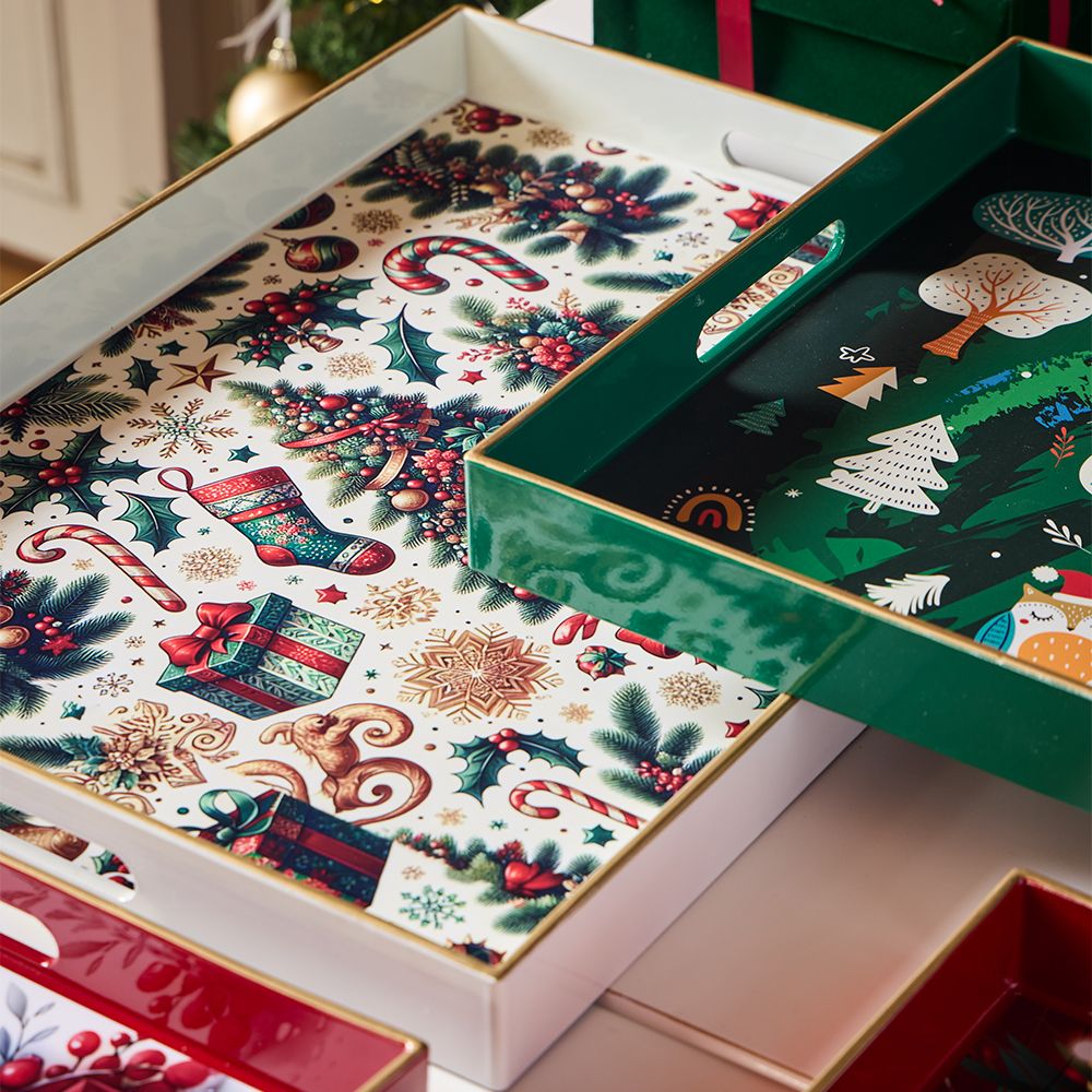 Trasforma la tua tavola festiva con questo elegante vassoio natalizio Andrea Fontebasso. Realizzato in plastica resistente, misura 48x35cm ed è perfetto per servire dolci, antipasti o come centrotavola decorativo. Il design con alberi party time aggiunge un'atmosfera natalizia sofisticata a ogni occasione. Ideale per chi desidera combinare praticità e stile durante le festività, questo vassoio è il dettaglio che farà la differenza nella tua celebrazione natalizia.
