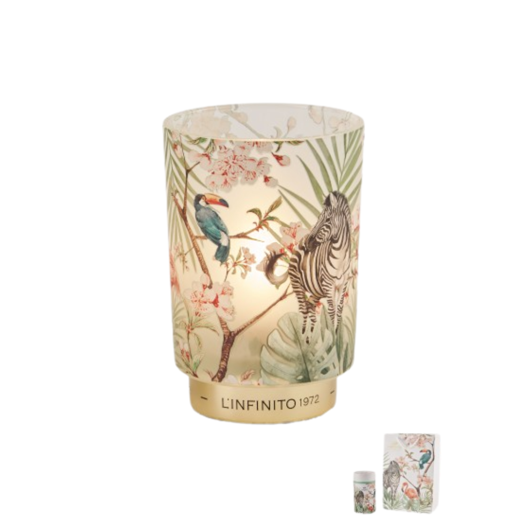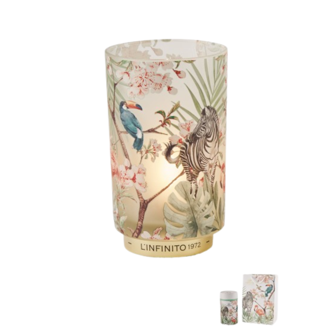 Lasciati incantare dalla raffinata lampada esotica in vetro L'INFINITO BOMBONIERE. Con un diametro di 10 cm e un'altezza di 15 cm, dona un'atmosfera calda e accogliente in ogni ambiente. Con un design sofisticato e una scatola regalo inclusa, è l'ideale per illuminare e decorare i tuoi spazi con eleganza.