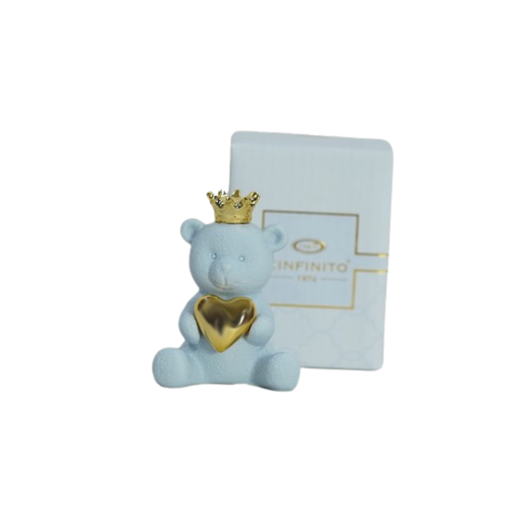 Aggiungi un tocco dolce ed elegante al tuo matrimonio con ORSETTO L'INFINITO BOMBONIERE in porcellana! Questa bomboniera a forma di orsetto celeste, arricchita da una corona e un cuore dorato, sarà il ricordo perfetto per i tuoi invitati. Un regalo unico che esprime l'amore eterno e la felicità condivisa.
