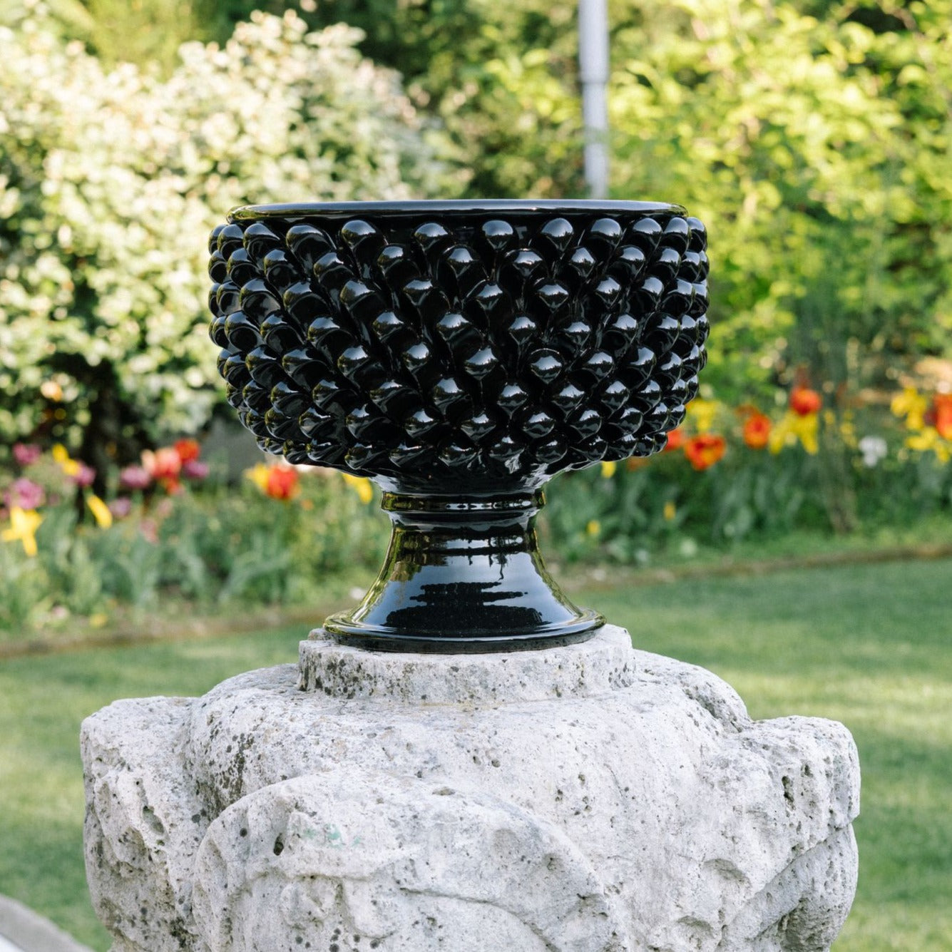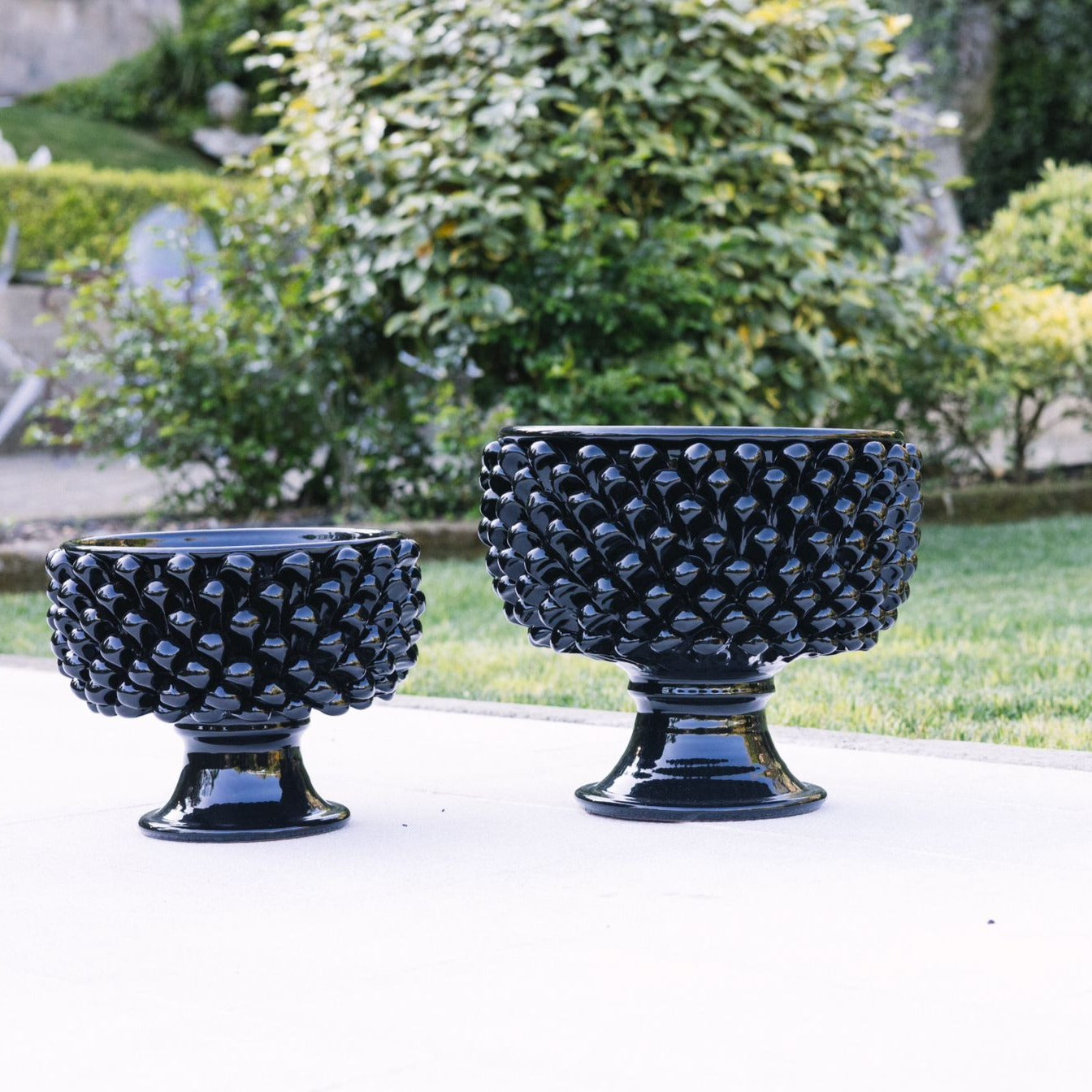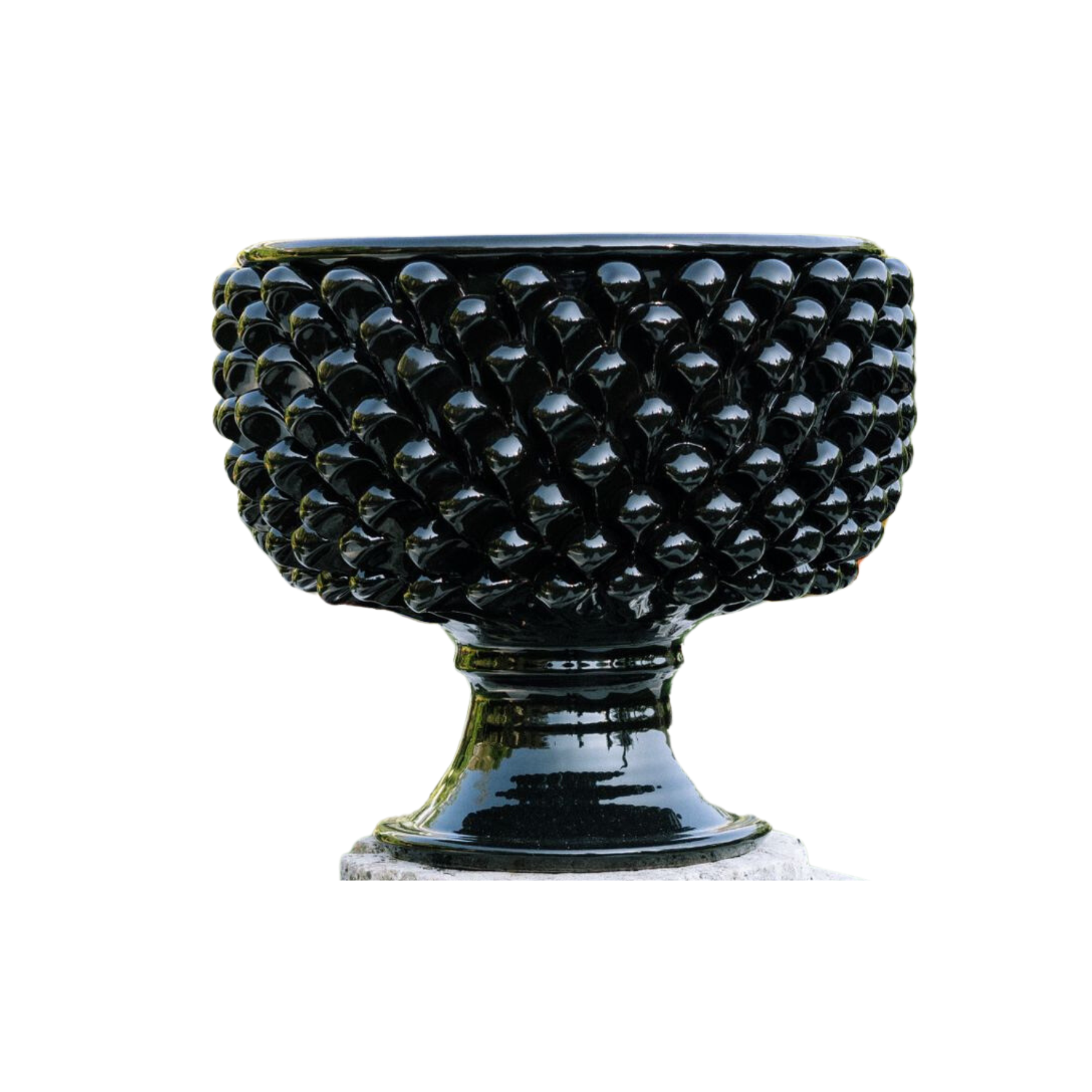 Esprimi il tuo stile con il lussuoso CASPO' CENTROTAVOLA PIGNA NERA ADELE CHÉRIE. Realizzato a tornio dai maestri artigiani di Deruta e progettato con stile unico dai designer di Adele Chérie, questo centrotavola in ceramica renderà la tua casa più elegante. La sua forma di mezza pigna nera unica è il tocco di lusso che stavi cercando! Niente brilla come la qualità artigianale di questo centrotavola. Riempi lo spazio con il lucente bianco e nero del CASPO' CENTROTAVOLA PIGNA NERA ADELE CHÉRIE e dimostra il tuo senso di stile! Disponibile altezza 20cm oppure 25cm