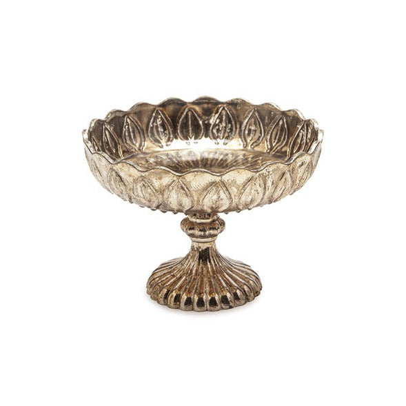 L'alzatina Antique Copper in vetro di Bruco è un oggetto decorativo di grande raffinatezza e eleganza, perfetto per abbellire qualsiasi ambiente della casa o dell'ufficio. L'alzatina è realizzata in vetro di alta qualità, con una finitura in rame antico che conferisce un aspetto sofisticato e di grande valore estetico. Grazie alla sua forma arrotondata e alle sue dimensioni generose, l'alzatina Antique Copper può essere utilizzata in diverse occasioni e per diversi scopi, come portapasticceria, portafiori o contenitore per oggetti vari. L'alzatina è disponibile in due diverse dimensioni, Ø15x13cm e Ø20x15cm e Ø20x18cm , per adattarsi alle diverse esigenze di spazio e di utilizzo. Grazie alla sua finitura in rame antico, l'alzatina conferisce un tocco di stile e di raffinatezza a qualsiasi ambiente in cui viene collocata. L'alzatina è perfetta per abbellire la tavola durante occasioni speciali come matrimoni, feste di compleanno o cene eleganti, ma può essere utilizzata anche come elemento decorativo da esporre in modo elegante e raffinato.