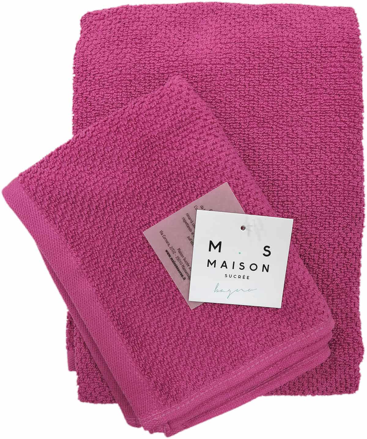 Asciugamano con ospite Pepe Maison Sucrée finitura spugna grana di riso. Asciugamano viso cm.60×110 + ospite cm. 40×60 Lavabile 40°c