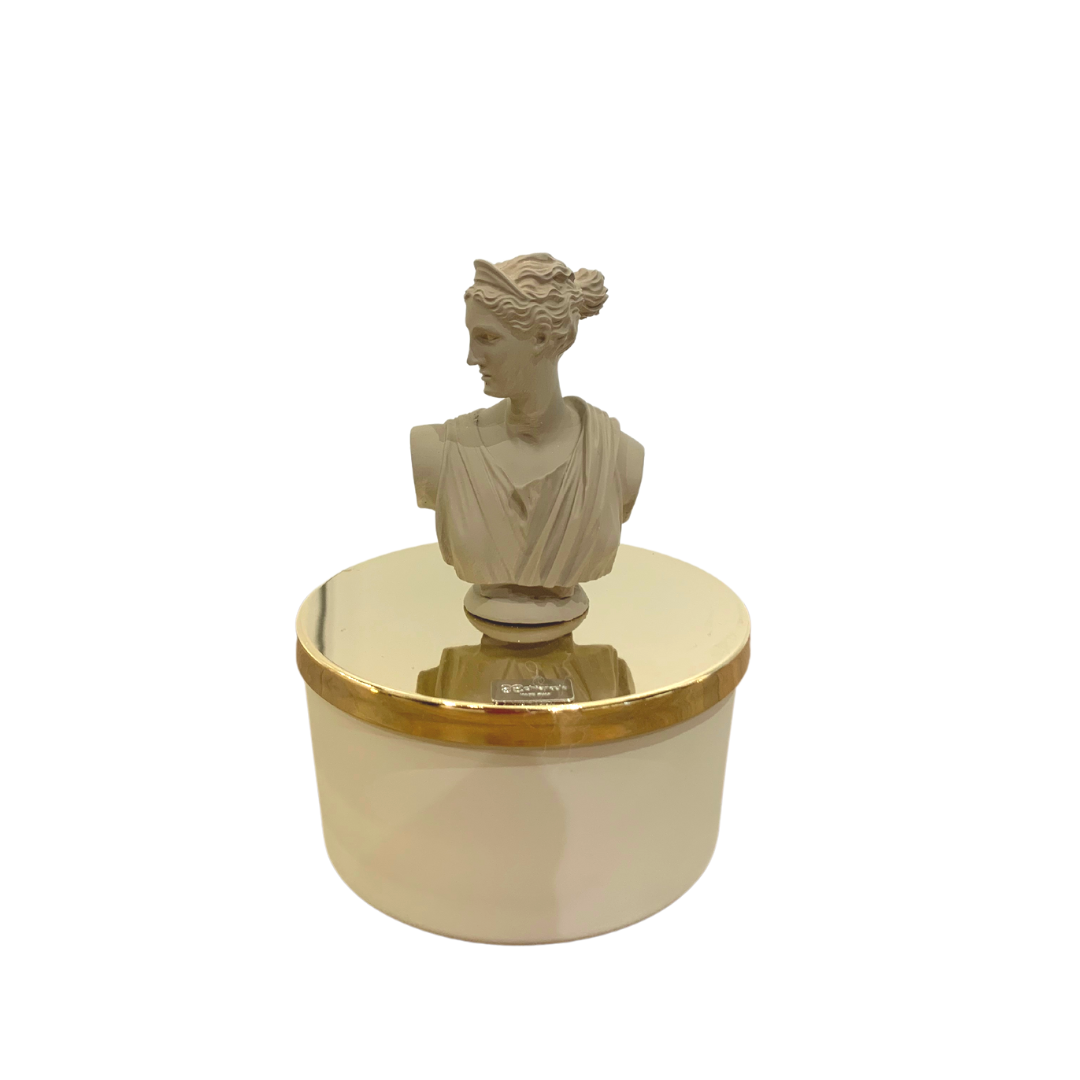 Magnifica, elegante e piena di stile, la candela profumata Artemide di Chiaraela è una gradita idea regalo e una fantastica bomboniera per un evento speciale. Busto realizzato in resina colorata. Dimensioni Ø9x14cm