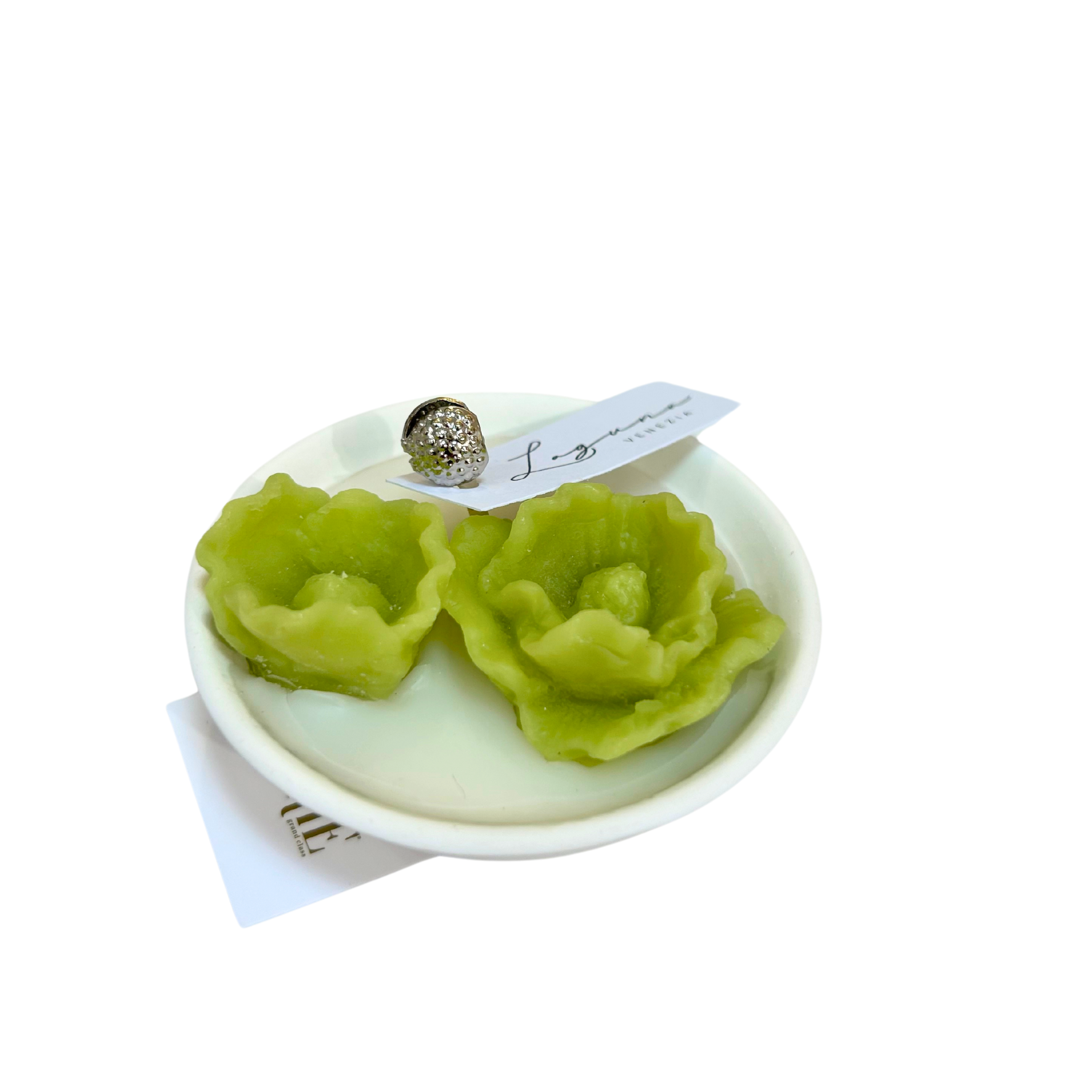 Ispirato dai meravigliosi fiori della Laguna di Venezia, questa candela in ciotola è un'aggiunta perfetta per creare un'atmosfera romantica. Realizzata con cera di qualità e decorata con fiori verdi, la sua luce calda e invitante porterà un tocco di bellezza naturale alla tua casa.