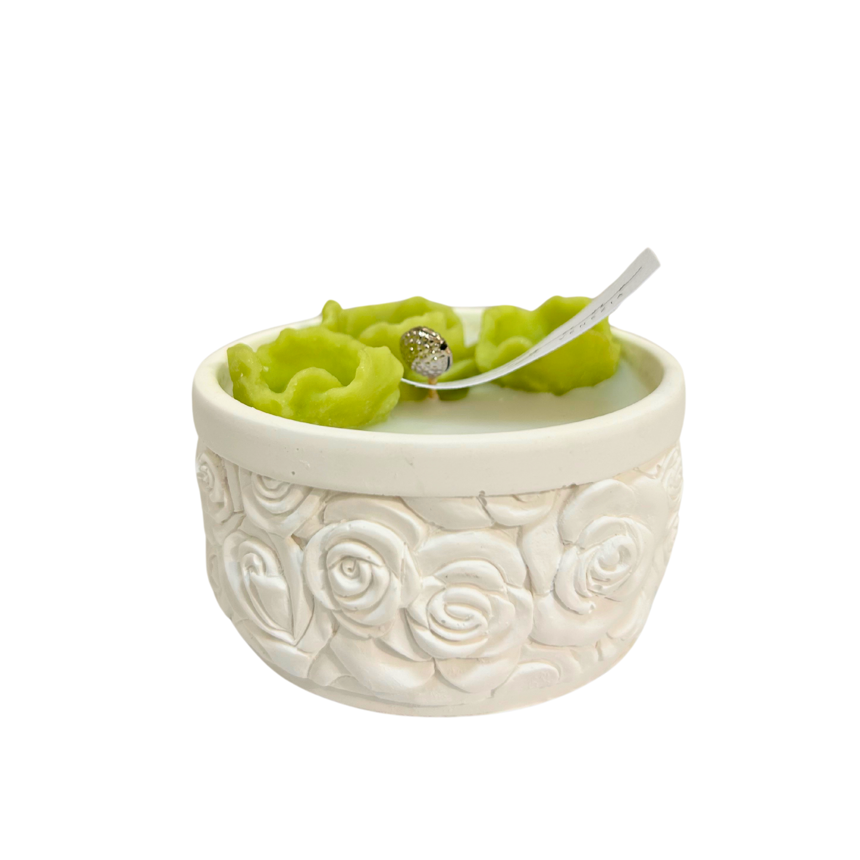 Ispirato dai meravigliosi fiori della Laguna di Venezia, questa candela in ciotola è un'aggiunta perfetta per creare un'atmosfera romantica. Realizzata con cera di qualità e decorata con fiori verdi, la sua luce calda e invitante porterà un tocco di bellezza naturale alla tua casa.