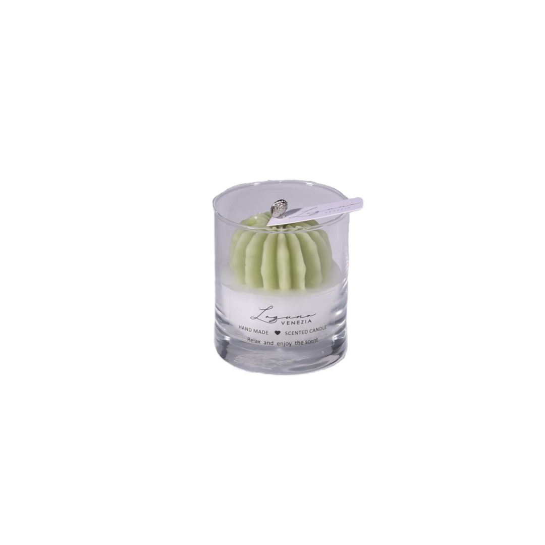 Porta un tocco di natura e profumo nella tua casa con la candela pianta grassa al profumo di basilico e cola. Realizzata in cera di soia, è contenuta in un elegante vasetto di vetro, perfetto anche come bomboniera. Disponibile in varie misure per adattarsi a ogni ambiente.