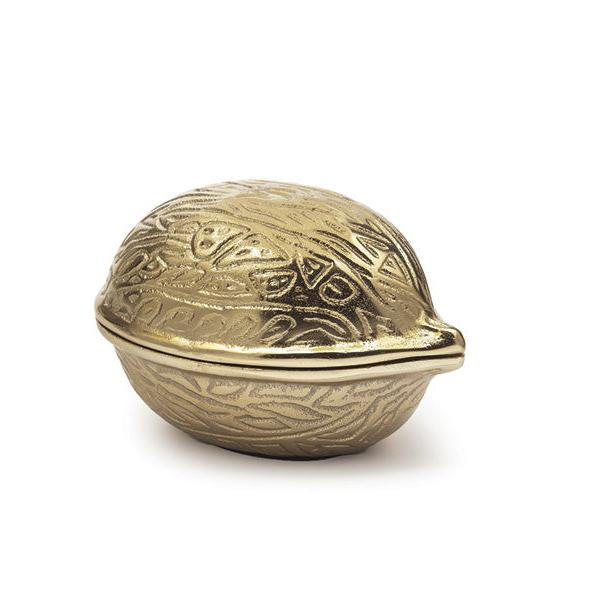 Questo elegante cofanetto in alluminio color oro è il modo perfetto per conservare i tuoi tesori. Con il suo design unico a forma di noce e le sue dimensioni compatte, è ideale per riporre bijoux, profumi o qualsiasi altra cosa tu desideri. Aggiungi un tocco di lusso e originalità alla tua collezione con il cofanetto Almond.