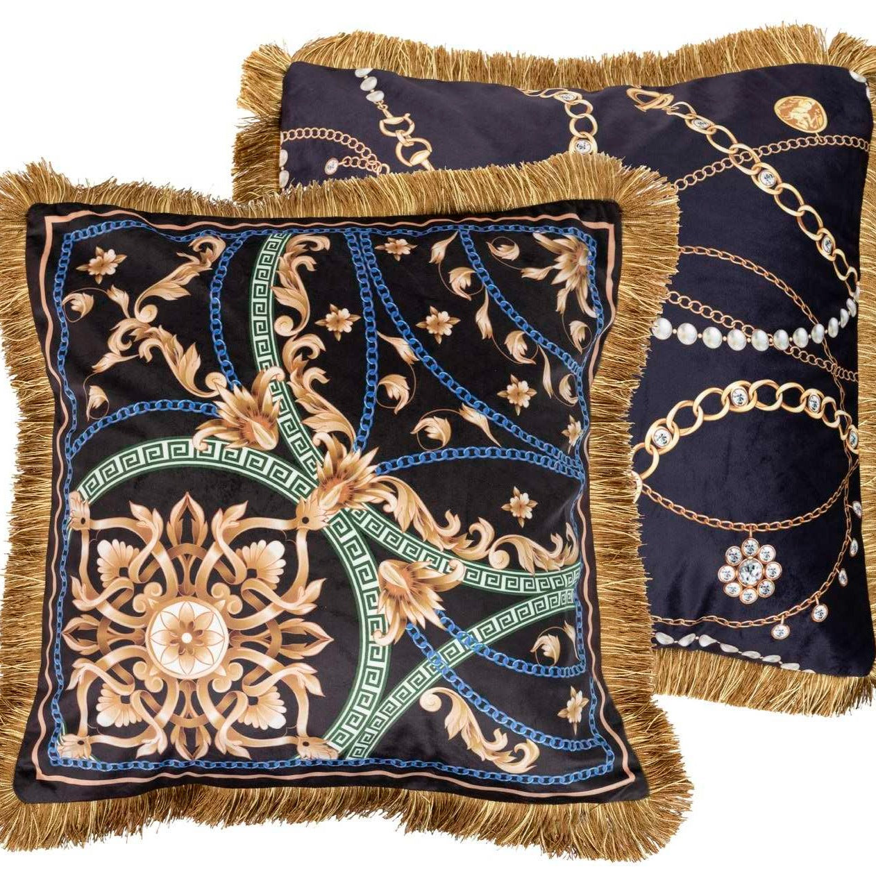Elegante, morbido e d'alta manifattura, il cuscino in piume d'oca di Ethan Chloe arreda in grande stile ambienti classici e moderni. Effetto vellutato e frange donano quel tocco retrò chic che rende unico questo elemento d'arredo. Sfoderabile. Dimensioni 45x13x45cm