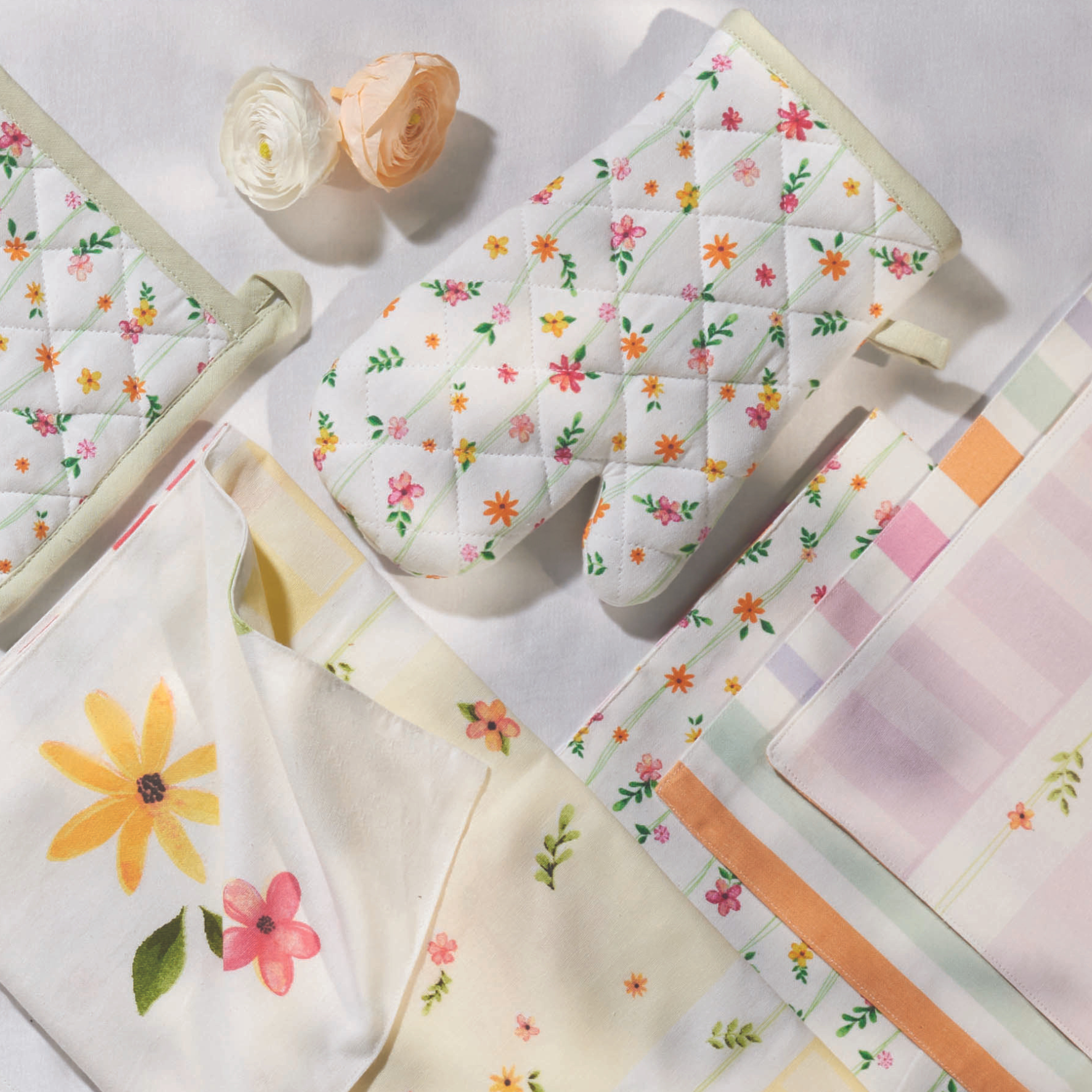 Proteggi le tue mani e dai un tocco di colore alla tua cucina con il guantone fiorellini Polline Brandani! Realizzato in cotone, 17x27 cm. Per una cucina sempre pronta!