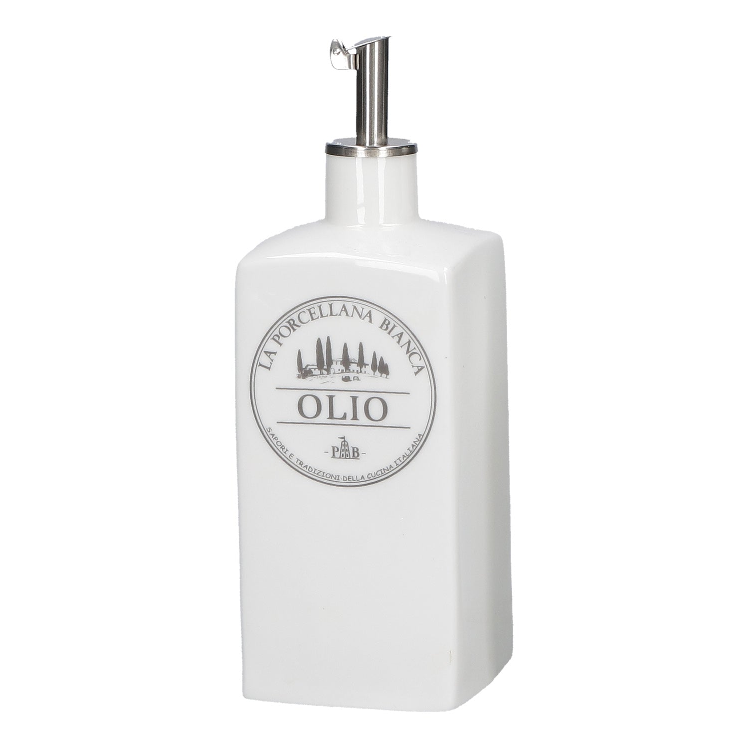 Ideale per la tavola, l'oliera di "La Porcellana Bianca", è realizzato in porcellana di alta qualità. Decora e conserva con stile cucine classiche e moderne. Lavabile in lavastoviglie. Contenuto in scatola regalo. Misure: 250 cc, 6x6xh15 cm