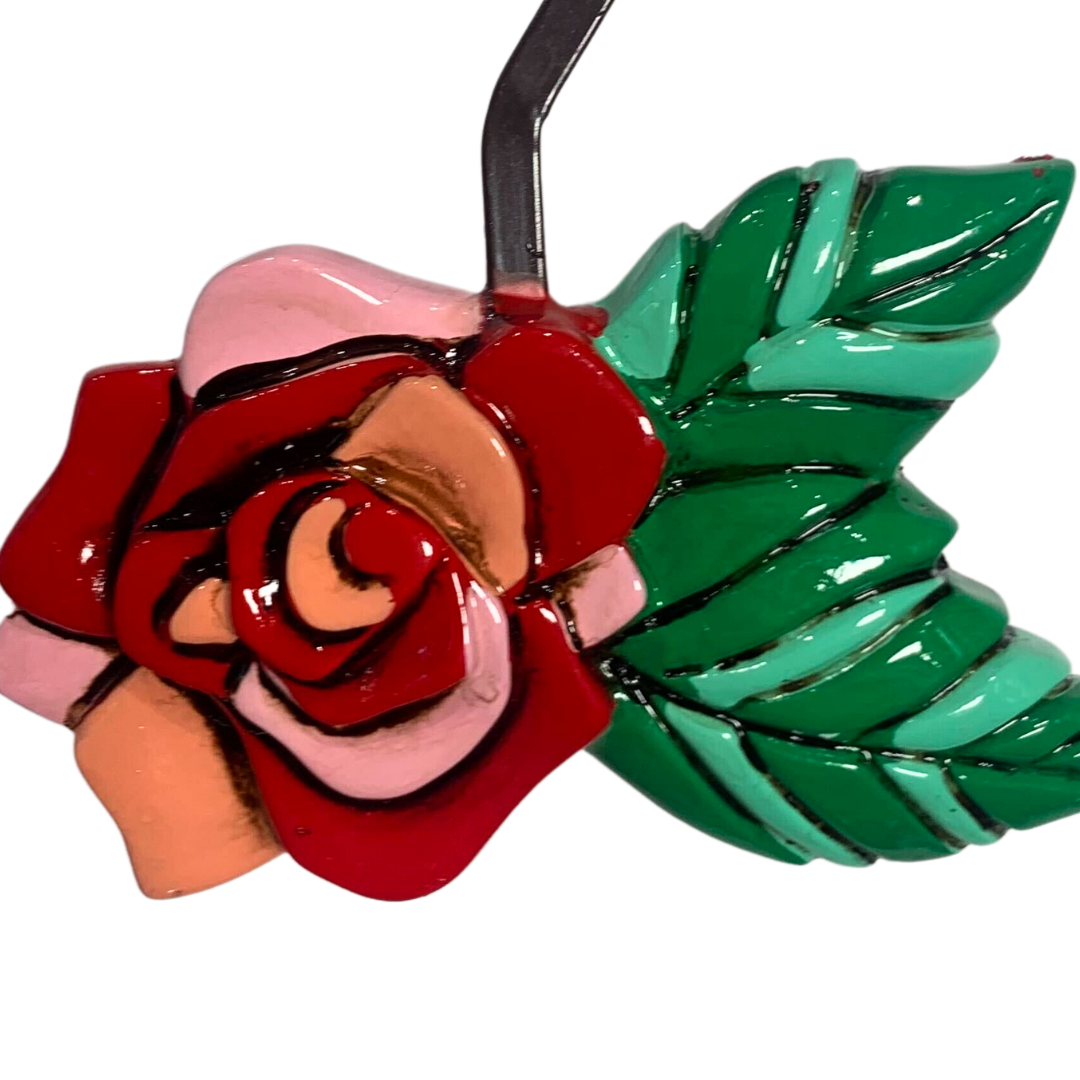 Orologio da parete con pendolo in resina e dipinto a mano. Design originale e colorato dell'artista Michelle Allen per la collezione Allen Designs.