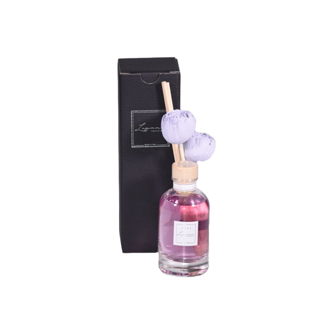 Aggiungi un tocco di eleganza e profumo alla tua casa con il nostro profumatore con boccioli di Laguna Venezia. La bottiglia in vetro con stick in legno permette un rilascio graduale del profumo per un'atmosfera piacevole e rilassante. Disponibile in diverse misure per adattarsi a ogni ambiente.