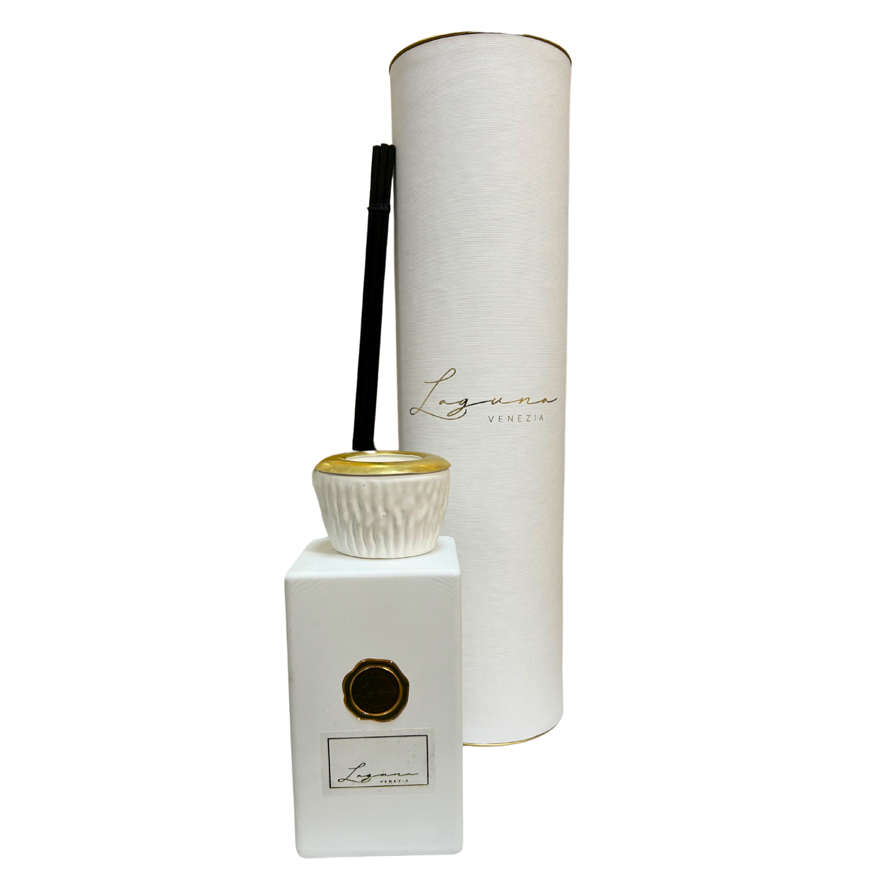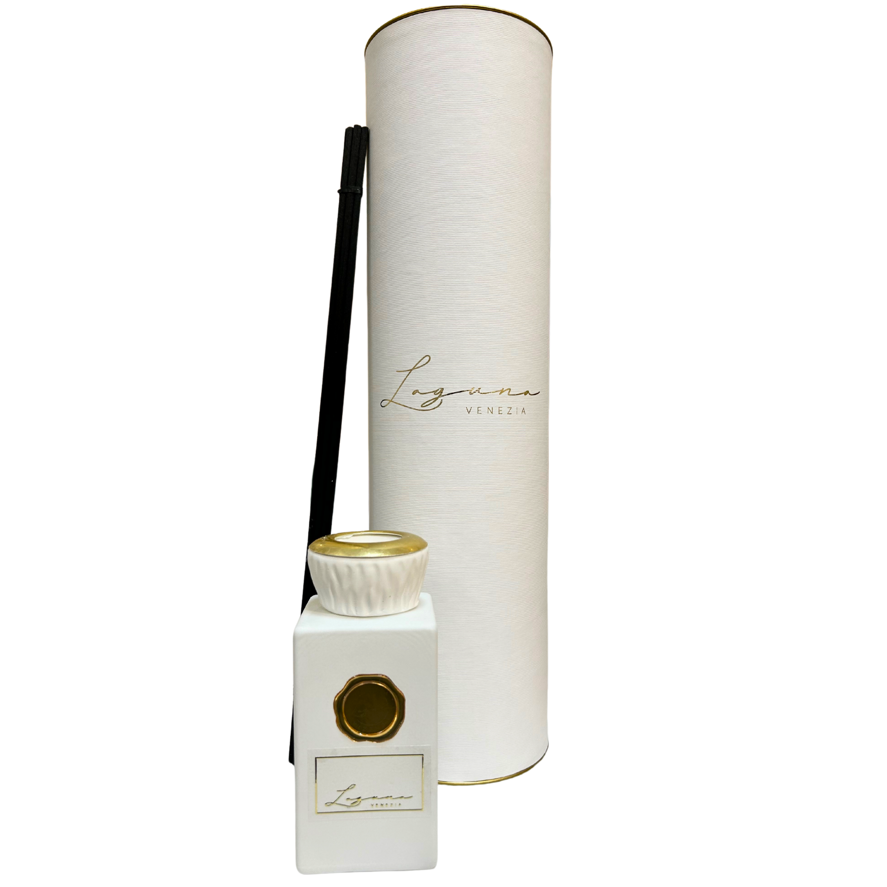 Aggiungi un tocco di lusso alla tua casa con il profumatore Gold Laguna Venezia. La bottiglia effetto gesso e il tappo oro lucido lo rendono un oggetto decorativo elegante, mentre la fragranza di fico costiero porta la freschezza del mare nella tua casa. Disponibile in diverse misure per una profumazione duratura.