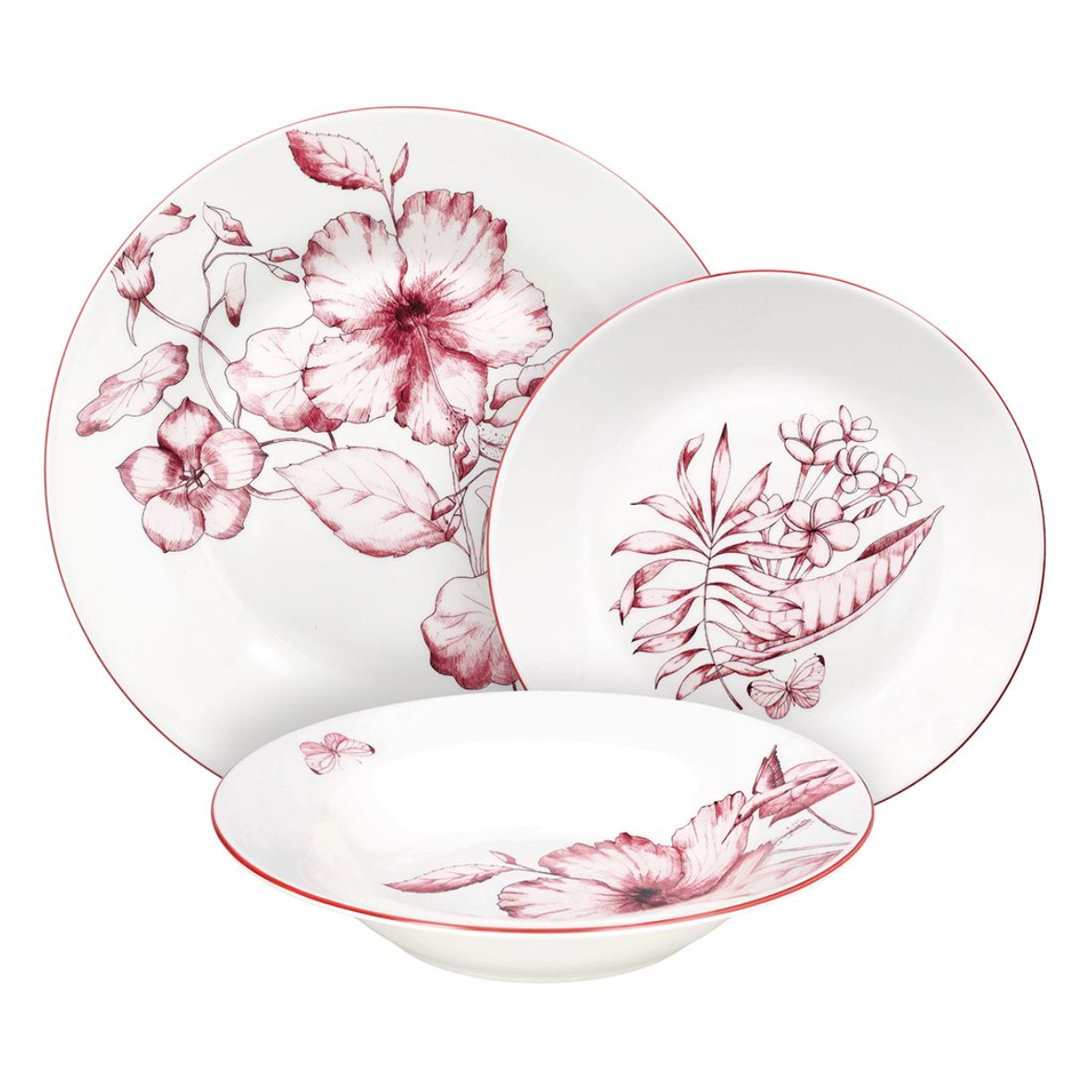 Rinnova la tua tavola con il Servizio Piatti Colibrì di Andrea Fontebasso, un set in porcellana da 18 pezzi che unisce eleganza e praticità. Decorato con un delicato motivo floreale nei toni del rosso amaranto e rosa, questo servizio dona un tocco raffinato a ogni pasto. Include sei piatti piani da 27 cm, sei piatti fondi da 22 cm e sei piatti da dessert da 19 cm, perfetti per accompagnare ogni portata con stile e armonia. Ideale per rendere ogni occasione conviviale un momento speciale.