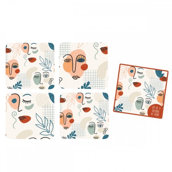 Set di 4 sottobicchieri assortiti conservati in una graziosa scatola. Ispirata da diverse correnti artistiche, la nostra nuova gamma Arty Eyes gioca su linee semplici e pulite, terracotta e naturale sono all'appuntamento della prossima tendenza. Adatti come bomboniera per un compleanno, una comunione o una laurea.