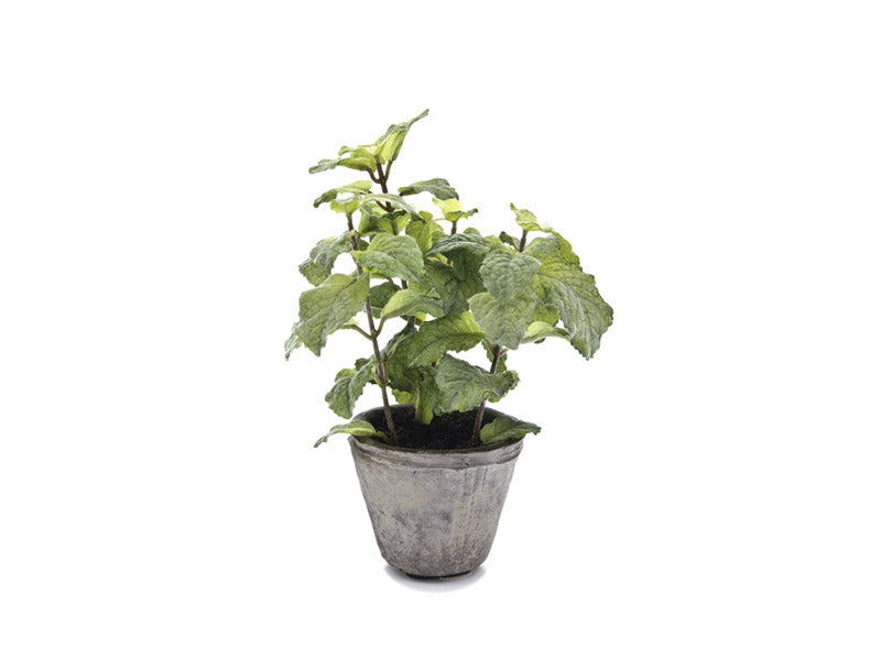 Vasetto pianta artificiale menta verde con effetto real-touch. Dimensioni: Ø10x21cm