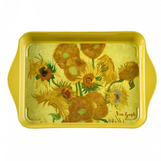 Vassoio in metallo. Dai famosi dipinti del pittore post-impressionista olandese Vincent Van Gogh, adatta come bomboniera per un compleanno, una comunione o una laurea. Disponibili con diversi quadri d'autore: Iris e caffè della sera e girasoli