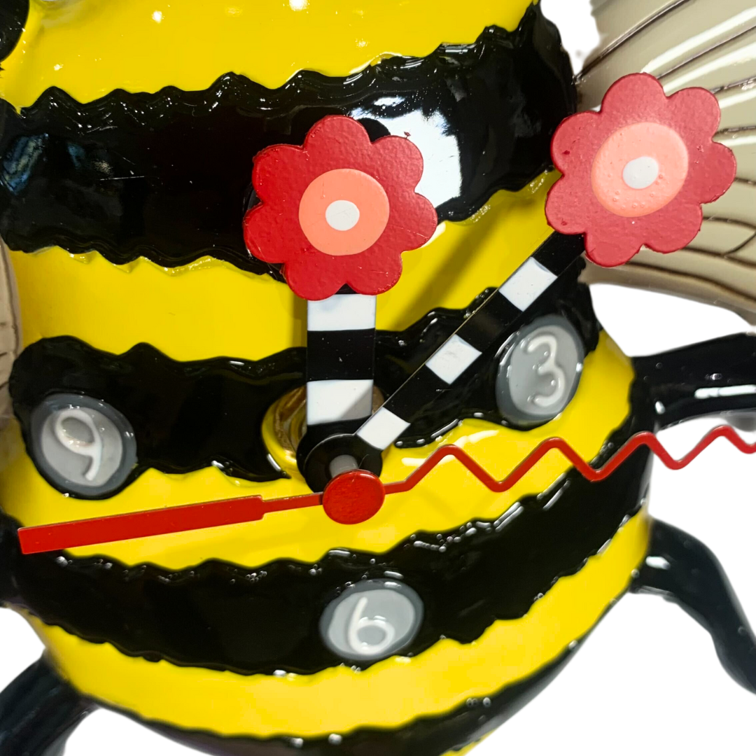 Orologio da parete con pendolo in resina e dipinto a mano. Design originale e colorato dell'artista Michelle Allen per la collezione Allen Designs.