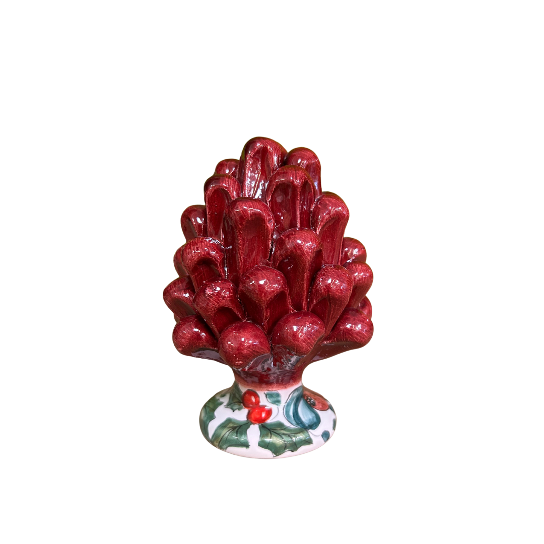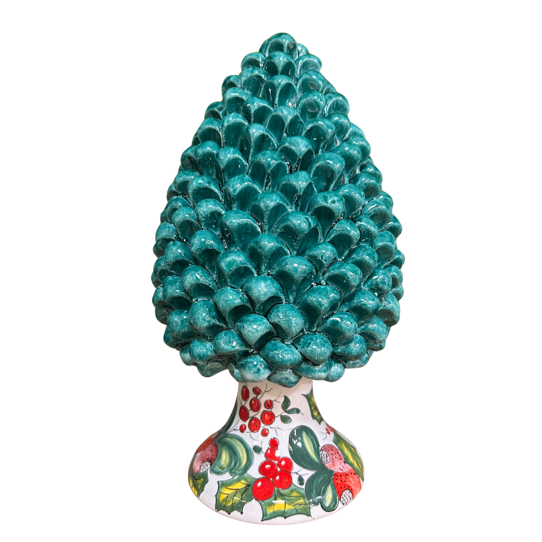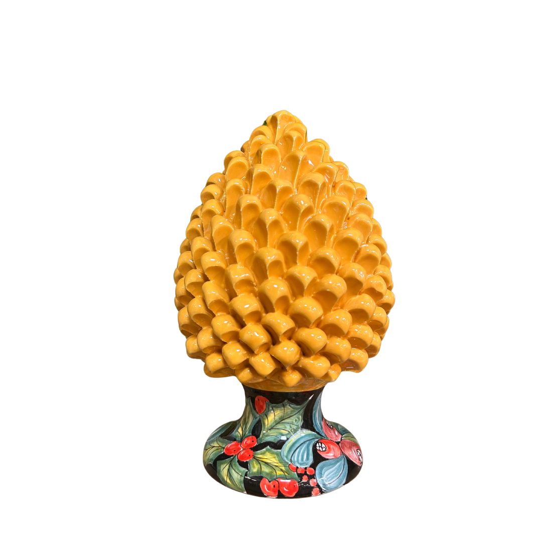 La nostra Pigna di Caltagirone è un capolavoro di ceramica artigianale, realizzata secondo la tradizione siciliana e arricchita da un piede finemente decorato con motivi di agrifoglio, perfetti per creare un’atmosfera natalizia raffinata. Disponibile in diverse dimensioni e colori, questa pigna è un simbolo di prosperità e abbondanza, ideale per arricchire la tua casa con un tocco di charme e autenticità. Ogni pezzo è unico, realizzato e dipinto a mano da artigiani esperti, per un oggetto che unisce bellezza, tradizione e qualità senza compromessi. Perfetta come decorazione o regalo speciale, la Pigna di Caltagirone celebra la magia delle feste con stile e calore.