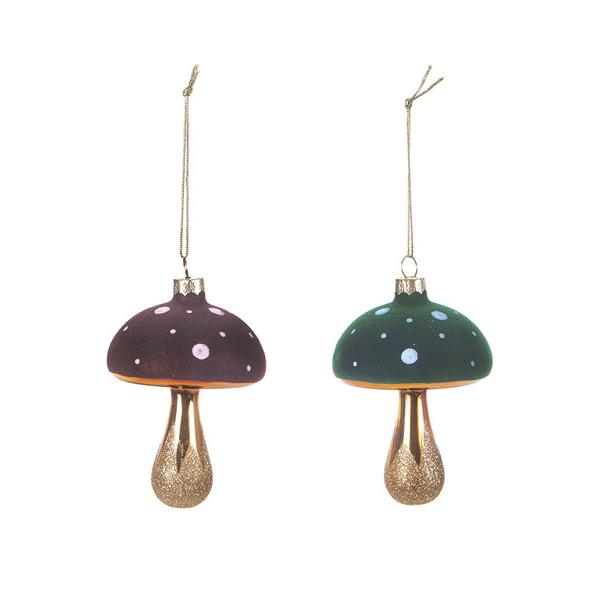 Aggiungi un tocco di natura alla tua decorazione natalizia con il delicato pendaglio a forma di fungo in vetro con effetto vellutato. L'assegnazione del colore è casuale, ma sia il rosso che il verde portano la gioia e la speranza del Natale. Dimensioni: Ø7x10cm.