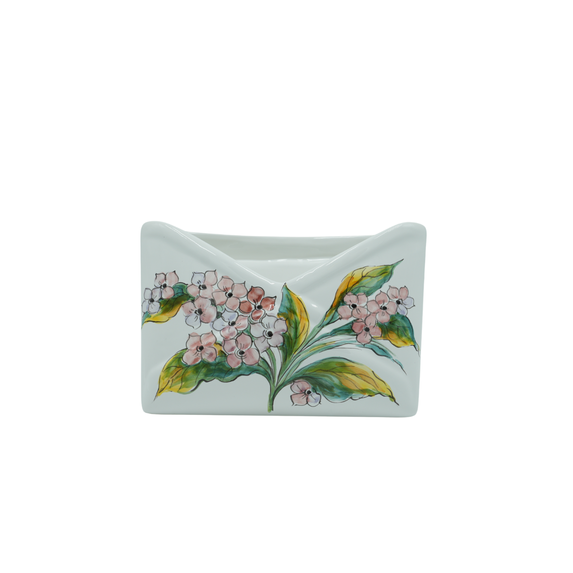 Elegante portaposta in ceramica della collezione Sophie Mariage, caratterizzato dal delicato motivo dell'ortensia. Perfetto per organizzare la corrispondenza con stile, questo pezzo combina funzionalità e bellezza decorativa. Disponibile in diverse misure per adattarsi a qualsiasi spazio. Ideale come regalo raffinato o per aggiungere un tocco di eleganza alla tua casa.