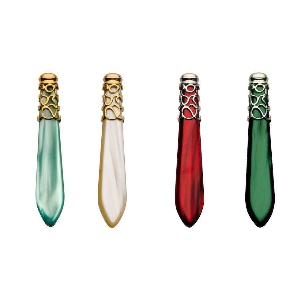 Scegli la linea di posate colorate Melodia Ghiera Cromata per incantare e conquistare i tuoi ospiti a tavola. Ogni singolo pezzo è realizzato con cura e attenzione: in acciaio inox 18/10, con un elegante manico in acrilico e una preziosa ghiera con finitura acciaio lucido che richiama l'intreccio delle note di una melodia, per un'esibizione memorabile. Sono lavabili in lavastoviglie.