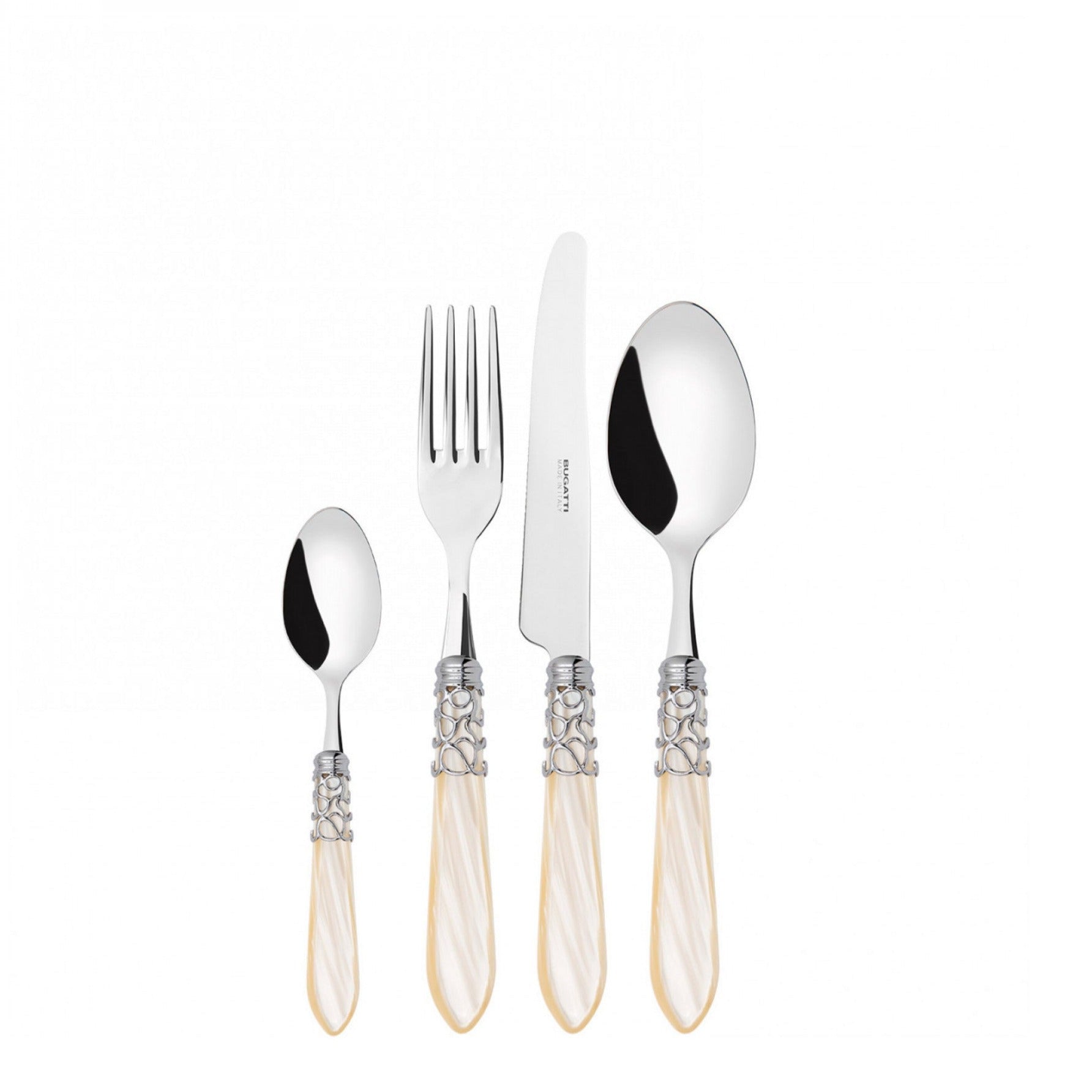 Set 24 pezzi confezionato in scatola Gallery, colorazione del manico avorio madreperla con finitura della ghiera cromata.