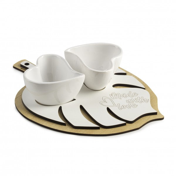 Idea bomboniera perfetta per chi ama regalare ai propri ospiti qualcosa di esclusivo e utile. Realizzato in legno con scritta incisa. Completo di due coppette. Contenuto in scatola regalo da completare con confezione bomboniera inclusa nel prezzo, con nastri, confetti e bigliettino personalizzato. Dimensioni 19x19cm. Scrivici per conoscere la disponibilità per la tua cerimonia.