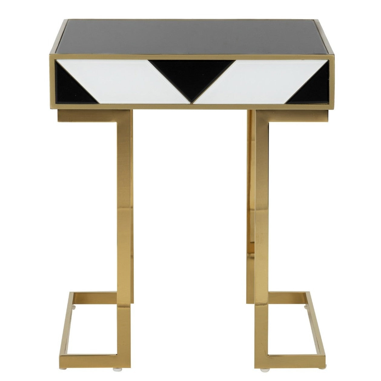 Elegante e sofisticato, il tavolino Monaco è l'ideale per un ambiente dal gusto elegante ed esclusivo. Realizzato in legno e metallo finitura dorata con frontali in vetro colorato. Dimensioni: 51x51x59cm