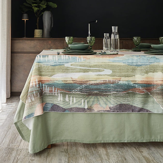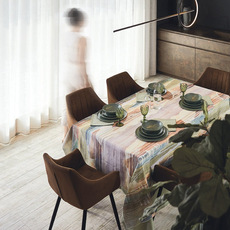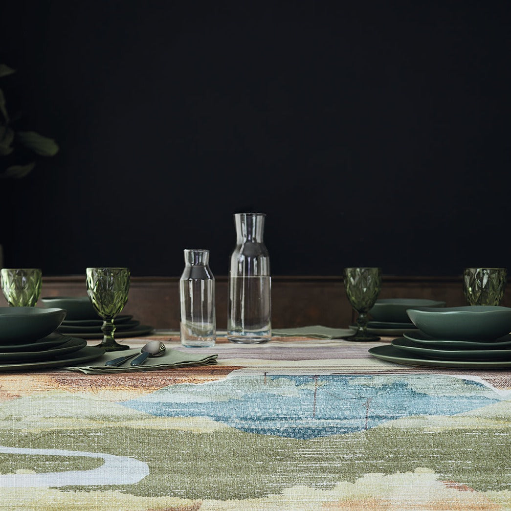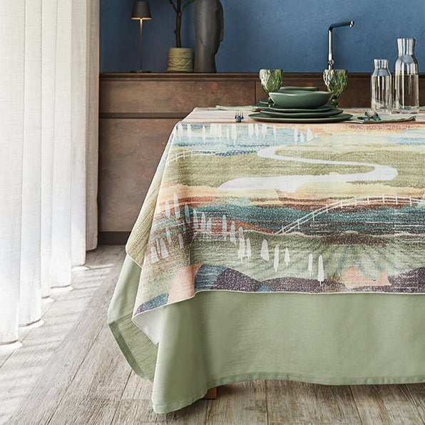 Questa tovaglia e/o runner in tessuto stampato Hills della linea Maison Sucreè è antimacchia e idrorepellente. Con composizione in 100% poliestere, non assorbe liquidi e si asciuga rapidamente. Diverse misure disponibili per arredare la tua tavola con gusto e praticità.
