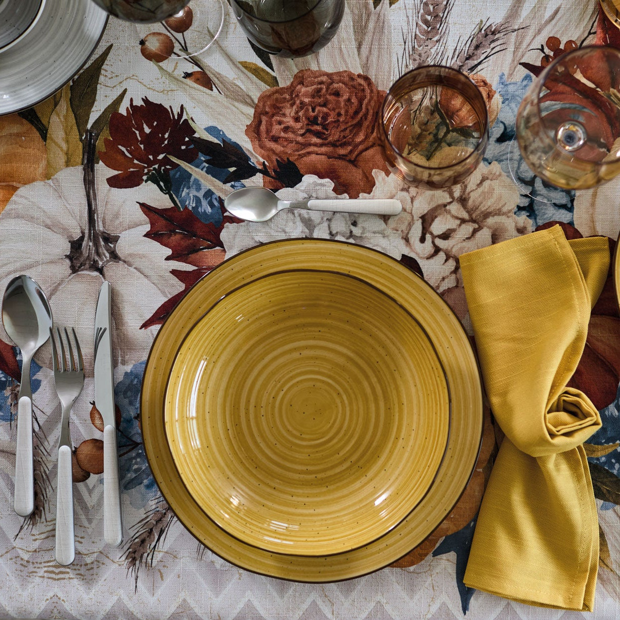Trasforma la tua tavola con questa elegante tovaglia a tema zucche della collezione Maison Sucrée. Realizzata in tessuto antimacchia di qualità, protegge perfettamente da versamenti e macchie accidentali, mantenendo un aspetto impeccabile. Il design sofisticato con motivo zucche aggiunge un tocco di charme autunnale a ogni occasione, dal pranzo quotidiano alle cene speciali. Disponibile in varie misure per adattarsi a qualsiasi tavolo. Pratica, resistente e affascinante: la scelta ideale per chi desidera stile senza compromessi sulla funzionalità.